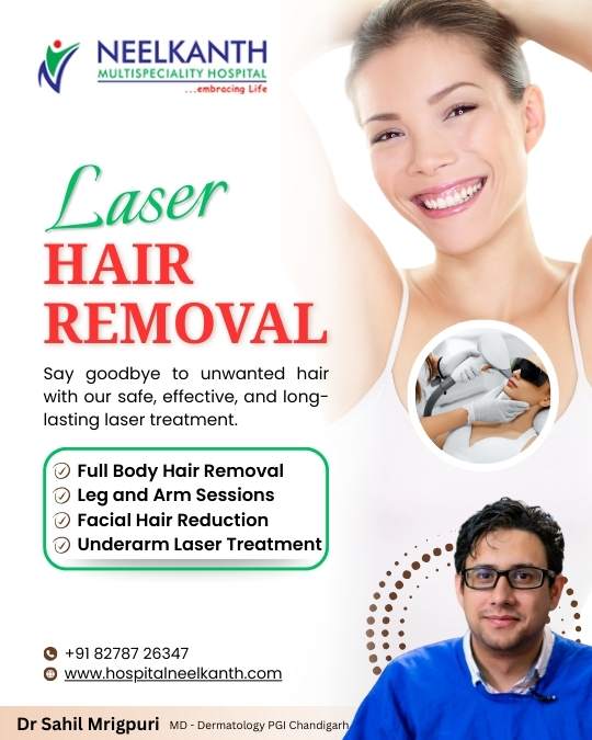 Book your consultation today at Neelkanth Hospital, Mandi (HP) and experience the difference with Lumenis LightSheer Laser Hair Removal.